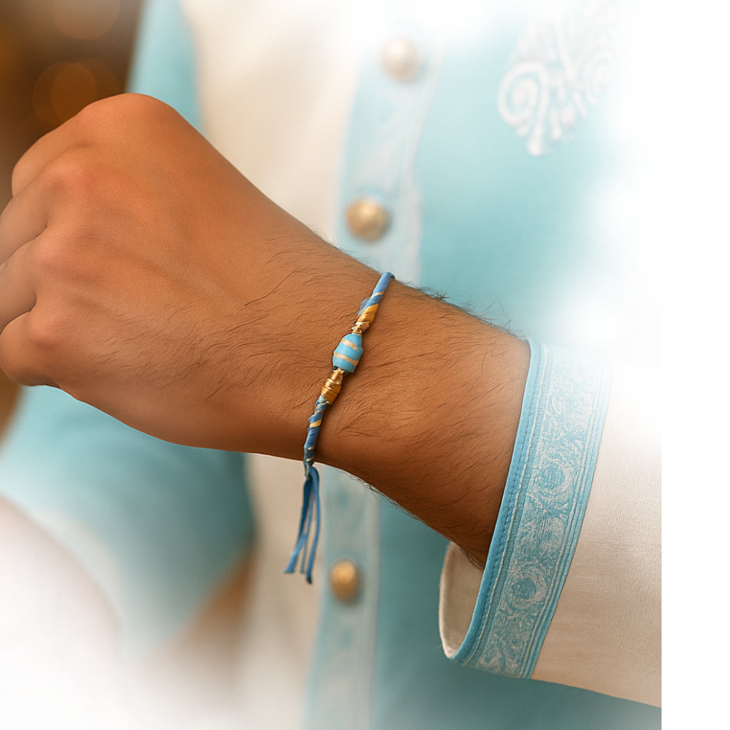 Each Rakhi is thoughtfully designed using premium threads, symbolic elements, and a touch of soul. Whether it’s tradition, colour, or calm you seek. Find a Rakhi that reflects your story, your way. Tie more than a thread this Raksha Bandhan.