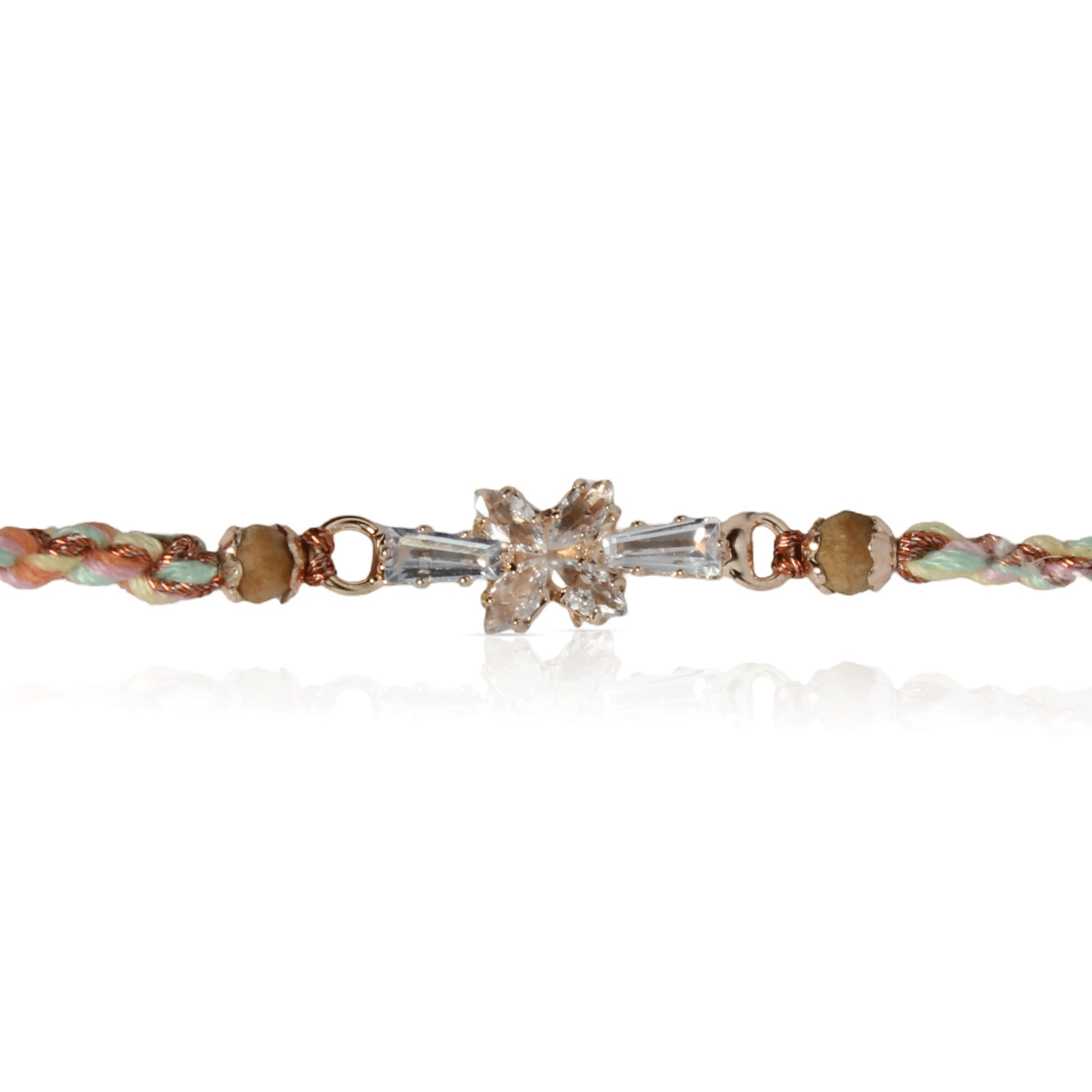 The Shub Rakhi is elegance in its quietest form. Featuring a duo of glinting crystals at its centre and softly twisted threads in warm tones, it’s made for the brother who values simplicity - but shines in his own quiet way.